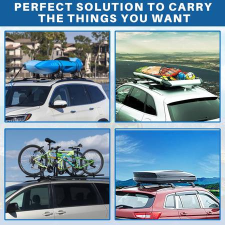【Outstanding Load Capacity】The maximum support weight is up to 165LBS(75KG). Maximize your car capacity. Cross bars roof rack provides a good base and convenience for items which won't fit in your vehicle. Such as: surfboards, camping gear, canoes, kayaks, bicycles, skis, roof bags, roof boxes, sporting goods, ladders, luggage... whatever you want!!!
