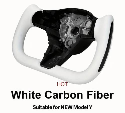 Tesla Model 3 or Y yokes: choose from 3 styles: Black Leather or White Napa Leather. Comes with heated or without heater coils (older model 3).