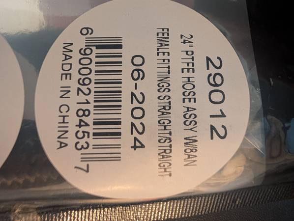 Brand new Vibrant Performance Pre-Assembled Hoses 29012 Pre-Assembled, PTFE Lined, Braided Nylon, Black, 24 in. Length, -8 AN Fittings, Straight, Female Threads...