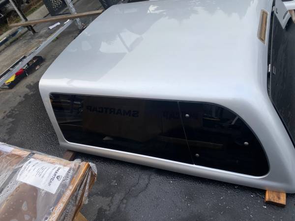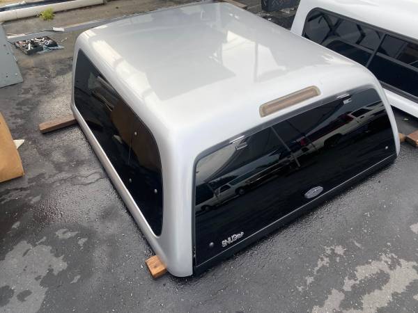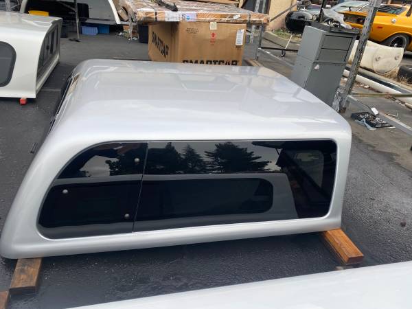 Snugtop Super Sport Fiberglass Camper Shell Silver Front drop down slider Carpet interior Clamps and key Fits 2005 - 2015 5ft Shortbed double cab Tacoma. If interested, please call / .Shells Plus