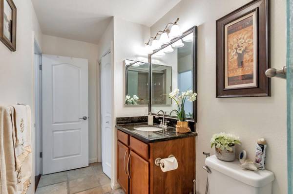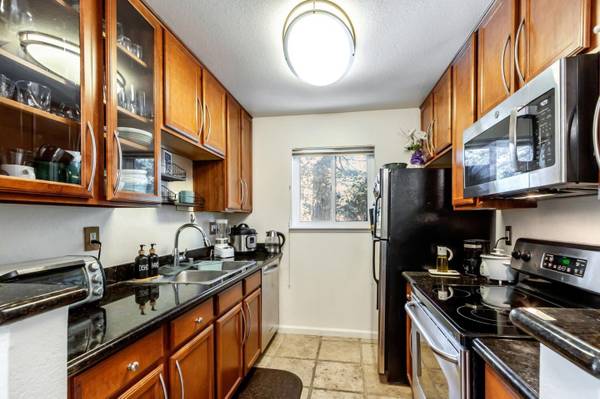 Beautifully updated 1-bedroom, 1-bath condo in the popular Sierra Crest community, located in the heart of Silicon Valley. This desirable upstairs end-unit in a two-story building shares only one wall, offering exceptional privacy and tranquility. The south-facing layout welcomes abundant natural light, with tall trees adding shade and seclusion. The functional floor plan features a spacious living room, dedicated dining area, and a well-appointed kitchen with granite countertops, rich cabinetry, and Travertine tile flooring. Sliding doors lead to a private balcony with additional storage. The bedroom offers a large walk-in closet, and the in-unit washer/dryer adds everyday convenience. Additional features include new soft-tone interior paint, dual-pane windows with treatments, and split A/C units in both the dining area and bedroom. Assigned covered carport plus ample guest and street parking. Community amenities include two pools, a fitness center, and clubhouse. Convenient to Santana Row, Valley Fair, City College, and major freeways including I-680, 880/17, and San Tomas Expressway.