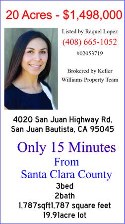 Only $1.5M for 20 acres + a 3 bed, 2 bath ranch home near San Juan Bautista, just 15 minutes from Santa Clara County!