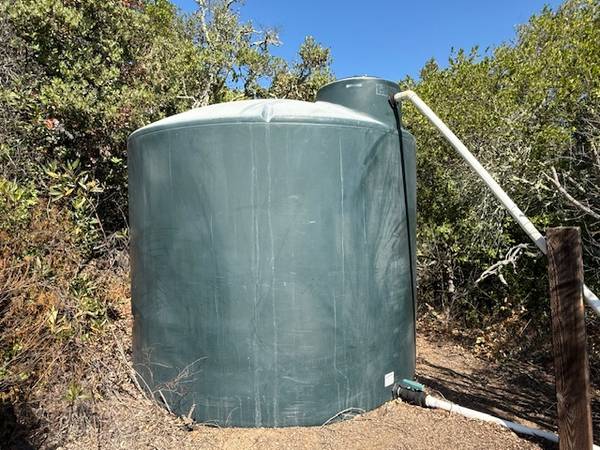When I first visited the property I did notice water spigots everywhere and hoses and water tanks with piping. There is a seasonal creek. There are two 2,500 gallon tanks. The water system is so extensive it must have taken years to run all of the pipes underground. The entire system works perfectly. About half way down the gully I found a 500G tank with valves and piping that continued down in elevation so I followed them and finally found the big beautiful 2,500 G water tank completely full and functioning. Water gushed out of it when I opened the valve and it was being refilled by the spring! There were also generators and a pump and some sort of box. The spring itself was about a 10-15 minutes walk down a trail to the West from the main holding tank.