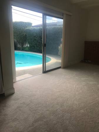 Your 20’x10’ bedroom has gone through a massive renovation. New paint, new carpet and new vertical blinds that cover a large sliding glass door 5 feet from the pool.