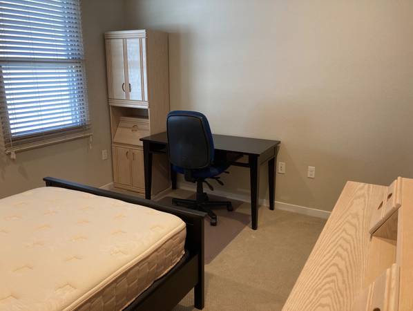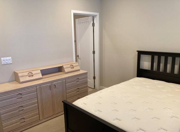 * Furnished with full-sized bed, large dresser, large desk, and office chair.