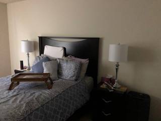 The unfurnished bedroom is 16 X 10, (fits any size bed & furniture) a good-sized closet & private full bath next to bedroom with tub & shower. The pic w/queen bed shows bedroom is for size only, it's an empty room.