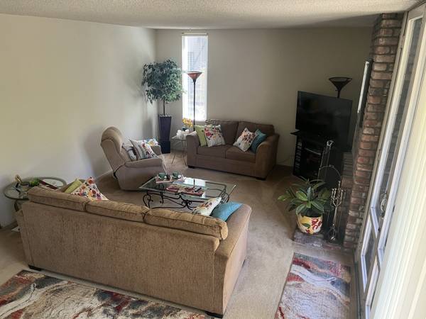 Condo is older, w/white walls and light brown carpet, a spacious 1100 sq ft unit. A short split level setup; large living room w/small outside patio downstairs; a furnished kitchen w/walk-in pantry, dining area and 2 Bd, 2 Ba, linen closet upstairs. Laundry room is outside connected to condo. Street Parking.