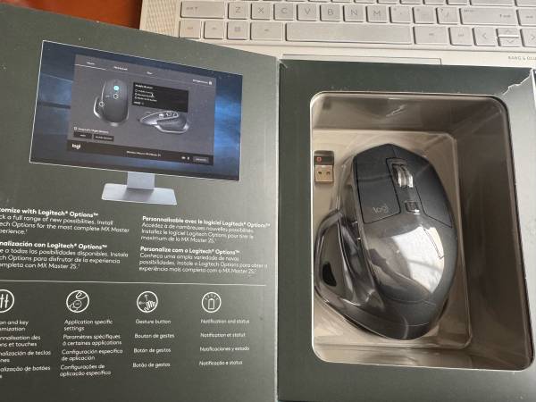 In excellent condition, with original box. Includes usb charging cable and logi transmitter (or just use Bluetooth). Works on PC, Mac, iPad & even your iPhone if you must. 4000 dpi See how a...