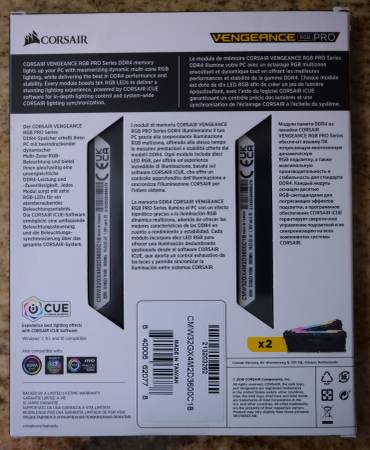 This is Corsair brand, from their Vengeance RGB Pro series of memory. This has embedded RGB LEDs to light up the inside of your case. I have two (2) identical sticks, and each is 16 GB in capacity, for a total of 32 GB. This is DDR4 technology and operate at 3600 MHz, which is for overclocking!