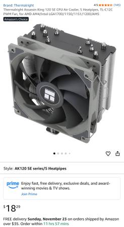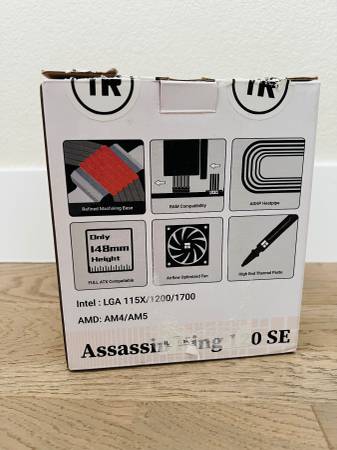 Brand new Thermalright Assassin King 120 SE CPU Air Cooler, 5 Heatpipes, TL-C12C PWM Fan, for AMD AM4/Intel LGA1700/1150/1151/1200/AM5. MSRP: $18.3 before tax Item location: Santa Clara 95050, or...