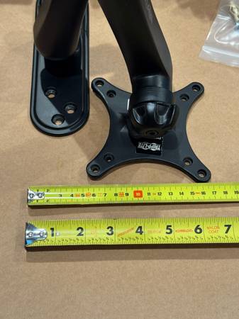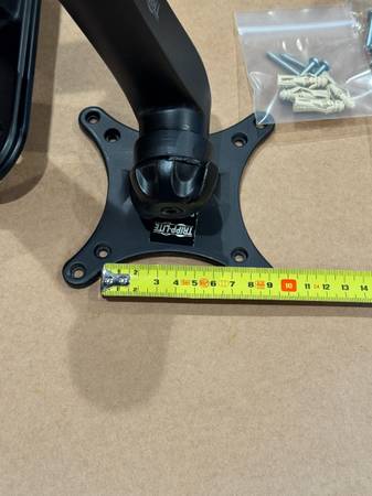 Max 15kg(33lbs) Both 75mm and 100mm mounting holes. All hardware included (monitor bolts and wall anchors) Used but in good condition.