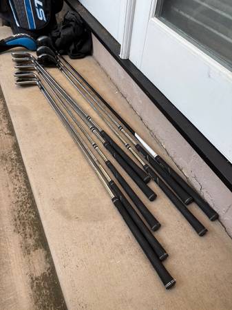 I am selling a CALLAWAY STRATA ULTIMATE 11-PIECE GOLF CLUB SET. This Strata Ultimate set is in nice condition. With this set you get irons 6-PW, 4H & 5H Hybrids, 3 wood and Matching Strata stand bag with rain cover. Please note that no Driver or putter are included with this set. A non-matching single driver and single putter are available at an extra cost. The 4H has a headcover. The longest iron #9 measures 38 1/4" long and the 3 wood measures 44 1/4". The irons and Hybrids have the Strata ultimate steel shafts with nice Strata grips. The 3 wood has a graphite shaft with nice Strata grip.The set is black and blue and silver in color. I am selling this set for $400.00