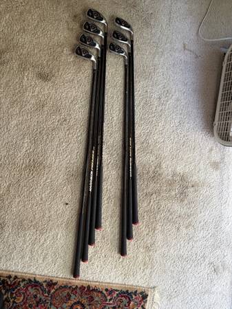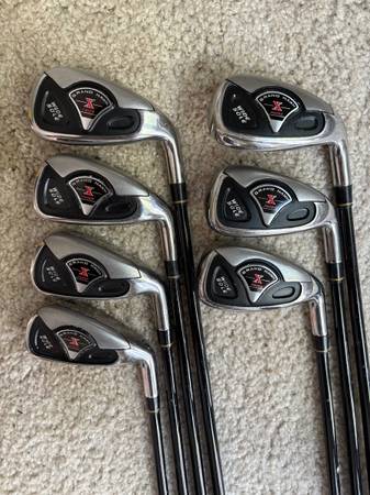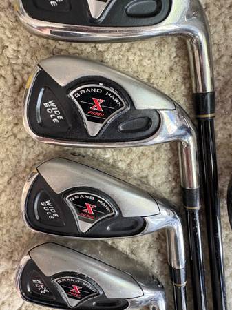 I am selling a GRAND HAWK X FUZED WIDE SOLE IRON SET 4-PW. This Grand Hawk X iron set is in excellent condition. The irons have Harrison Premier Lite Graphite Shafts with excellent Golf Pride Grips. The longest iron #4 measures 40" long. I am selling this set for $160.00