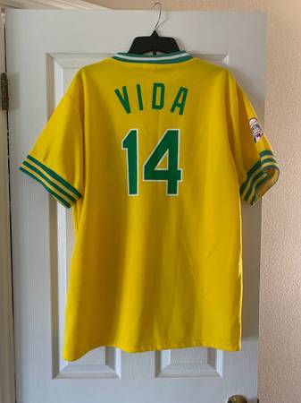 I am selling a OAKLAND A'S VIDA BLUE JERSEY SIZE XL. This promo jersey is in excellent condition. It has the Aquafina arm patch. I am selling it for $40.00