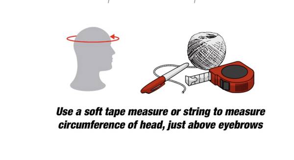 - Follow the instructions in the photos to measure the head size.