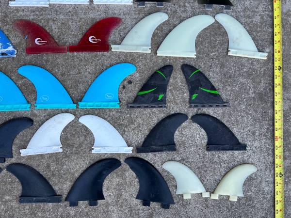 Various surfboard side fins, and thruster set up Prices range from $20-$60 Willing to ship if buyer pays for shipping