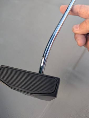 It also has a special face insert that creates overspin to get the ball rolling smoother off the start and not skip the first few feet like conventional lofted putters. Please view YouTube video below.