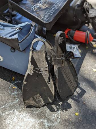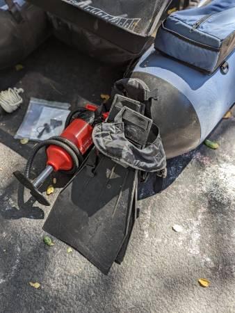Used. Needs New Bladders Comes with pump, anchor, 3 sets of fins (2 heavy duty, 1 lightweight) Make offer. New bladders are approx $55 each (will need two, left and right). 2 kids just dont have the...
