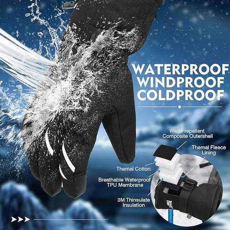 【MAX Warm and Breathable】- Our winter snow gloves feature a 5-layer design for optimal performance. The high-density outer fabric provides waterproof and windproof protection. In the middle, 3-layer thickened spray cotton quickly adds warmth. The inner fluff insulation lining ensures warmth and actively wicks moisture, keeping your hands dry. With fast-drying technology, these gloves efficiently move sweat away, while the insulating layer traps body heat and allows moisture to escape.