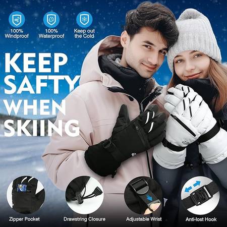 【Keep Safe and Warm】- With ajustable strap, anti-loss buckle closure, touchscreen fingertips, reinforced grip palms, 5-layer lock warm, and Quick-drying waterproof inserts, these details provide superior dexterity and an exceptional user experience. And each snow glove has a waterproof zipper pocket for carrying light items, making your outdoor travel safer, more convenient, and warmer.