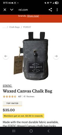 Made with the most durable fabric available, the STATIC Waxed Canvas chalk bag looks more vintage the more you use it. It's sturdier than regular canvas and less likely to tip over than other bags....