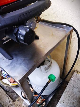 $50 - Stainless Steel compact table for BBQ. Bottom shelf, two handles to hang gear.