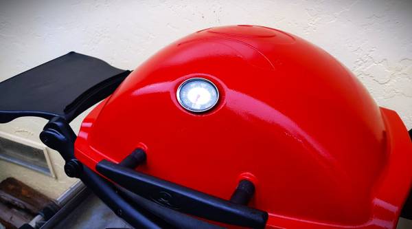 The thermometer tells you internal temperature without opening lid.