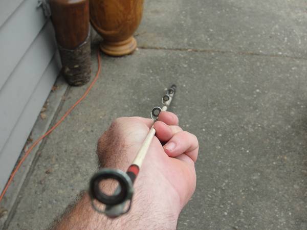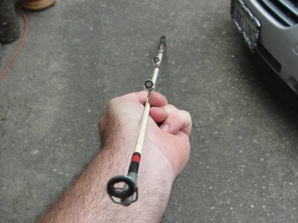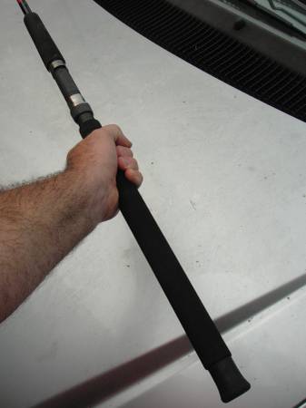 7.5 ' generic white 1 piece w red wraps , med action imo, boat or pier style rod...5 guides , $60