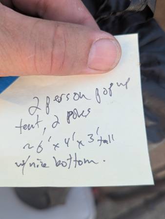 all is here, works fine. Don't think it was ever se tup...waterproof floor, 6 x 3 x 4 feet. $60 cash camp camping burning man adult Google REI north face sleep sleeping hike hiking gear bag backpack...