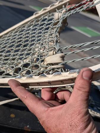 46 " x 12"...light wt metal, and cable mesh...these r bombproof