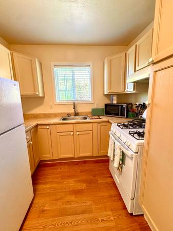 is complete with furniture, cookware, dinnerware, linens, cleaning tools, and microwave.