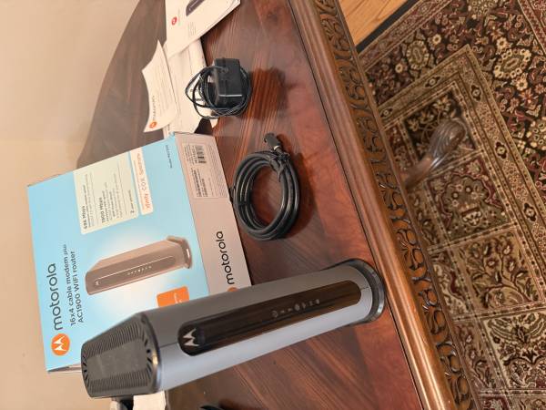 Motorola MG7550 16X4 Cable Modem & AC1900 WiFi Router Combo Dual Band High Speed. Includes power source and cables. Very nice condition. Also approved for Xfinity internet