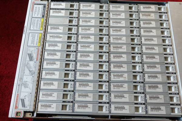 Anyway, the servers are in good working condition. Includes a full load of drive trays per server, but no drives. Each server has dual dual-core Opterons and 16GB of DDR1 memory. Dual redundant power supplies. No rack rails or cable management kits, but the servers are otherwise complete.