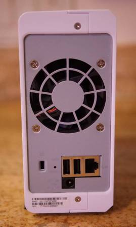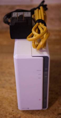 For sale is Network Attached Storage (NAS) unit. This is a Synology brand, model DS115j. The NAS is currently installed with a single Seagate brand hard disk drive (HDD) with 4TB of capacity. The HDD is a IronWolf NAS series drive, model ST4000VN008. This Synology NAS unit is very small and requires very little electricity to operate. Complete technical details are listed below.
