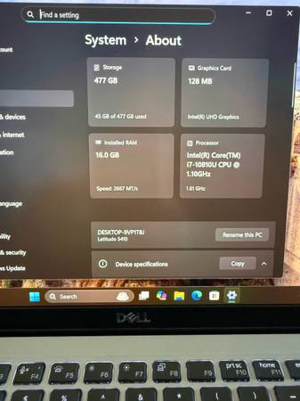 Used in good condition Dell Latitude 5410 Intel Core i7-10810U 16GB RAM 512GB SSD Storage. Dell 65w power supply. Windows 11 Pro. Let me know if you have any questions.