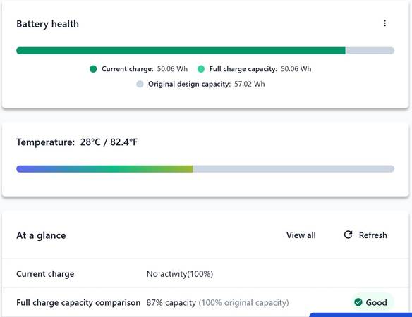 – Battery health 50 / 57 Wh (≈ 7–8 hours)