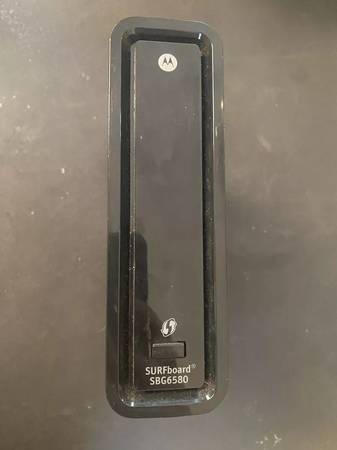 ARRIS Motorola SURFboard SBG6580 DOCSIS 3.0 Cable Modem/ Wi-Fi N300 2.4Ghz + N300 5GHz Dual Band Router. Comes with power adapter and installation instructions