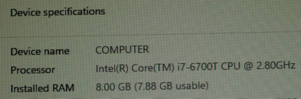 – Intel Brand 2.8 GHz i7 Processor (Model 6700T)
