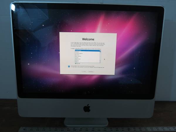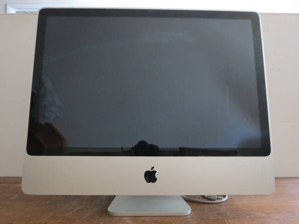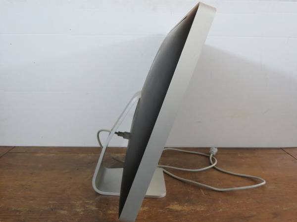 Up for sale is one used Apple iMac computer model 8,1 in very good working and cosmetic condition. There appears to be some uneven brightness across the screen. The screen tilt hinge is loose and the screen needs something wedged behind it to keep it upright .There are some small nicks an scratches on the exterior casing. Includes power cable.