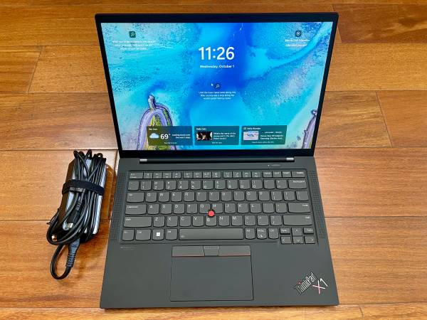 For sale is a Lenovo ThinkPad X1 Carbon, a premium ultralight notebook designed for those who need a reliable travel companion without compromising on performance or resilience. Built from carbon fiber and advanced composite materials, the system achieves remarkable rigidity while weighing only about two and a half pounds. Produced in 2022, this example remains in excellent shape both visually and operationally. The photographs shown are of the actual unit being offered.