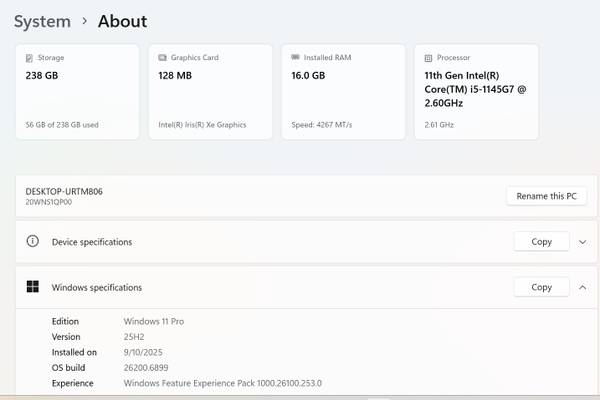 – Intel Core i5-1145G7 vPro (4 cores, 8 threads, up to 4.4GHz)