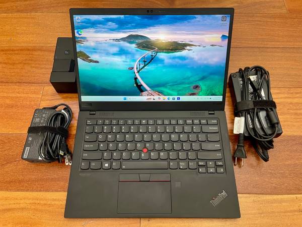 Despite its durable mix of carbon fiber and magnesium alloy, the X1 Carbon is exceptionally lightweight at roughly 2.4 pounds. The battery remains in strong condition, holding about 92 percent of its original capacity and typically offering seven to nine hours of runtime. A genuine 65W Lenovo USB-C charger comes with the system.