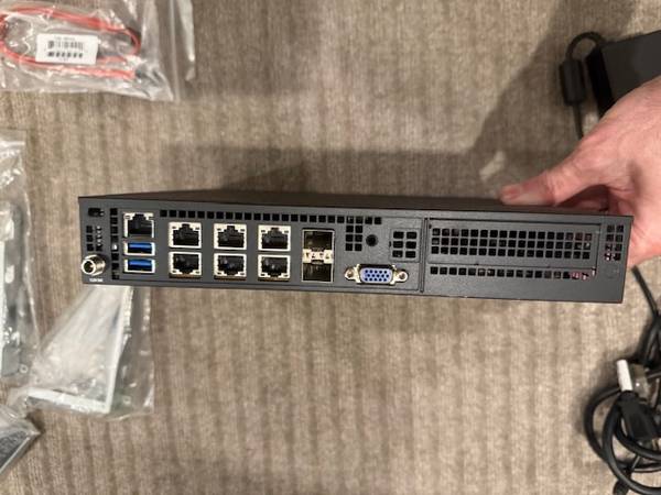 Used working Supermicro SuperServer E300-8D 1U Mini PC Server - 1 Xeon D-1518 2.20 GHz, with 64G RAM, 1.5T (combined Hard Drive), 6 1G ethernet port with 2 SFP ports. Comes with two 10G...