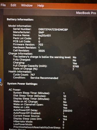 I’m selling my lightly used MacBook Pro. It still has decent battery life and is great as a 2nd laptop or for students. Serious buyers with cash only. Local pickup and will not ship
