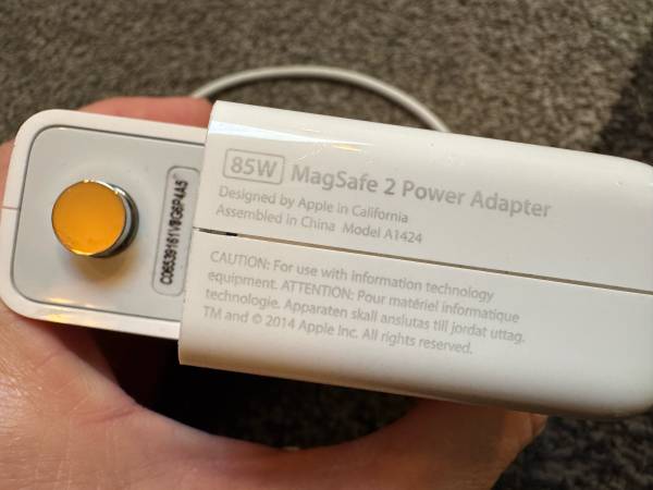 —MagSafe 2 charging port (with original Apple 85W charging block)