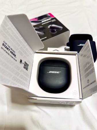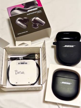 Mint condition Bose QuietComfort Ultra earbuds in its original box and cable. Additional wireless charging case included. One unit only.