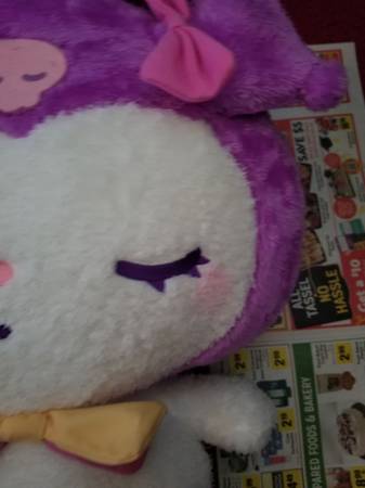 Super large kuromi plush by sanrio and Sega. 2024 China. Good condition, clean. About 18 inches by 14 and a half inches. Cute and soft. Mainly used as display. $40 final sale. hello kitty and...