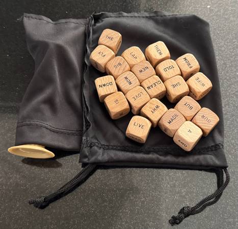 - 21 Wooden Cubes/Dice, each with 6 distinct words