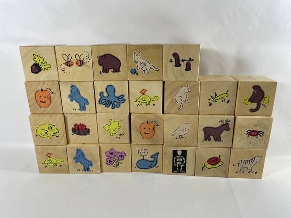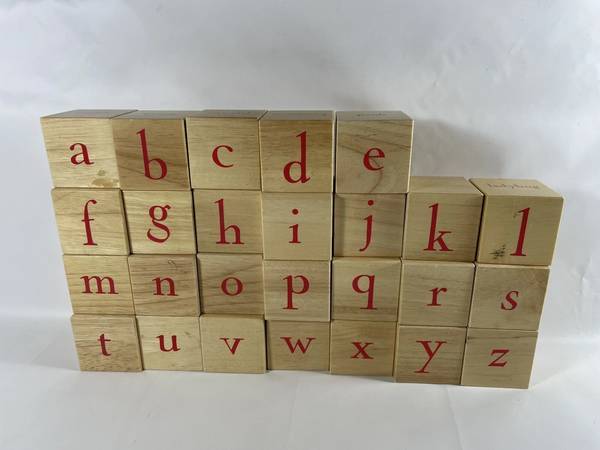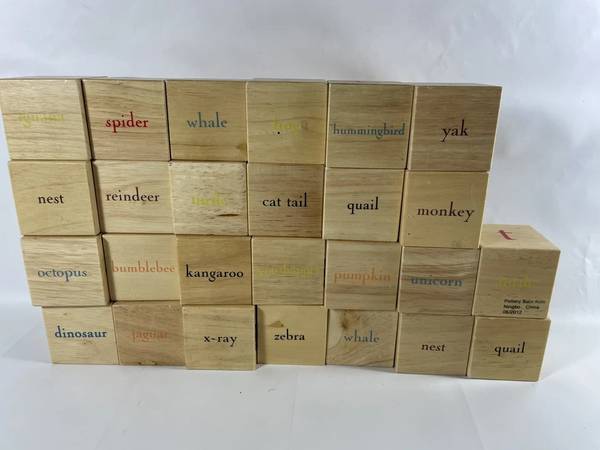 Complete Wooden ABC Alphabet Blocks Animal Pictures Words 2 1/2 inch blocks letters and words and pictures repeat on opposite sides nice wooden alphabet pictures and words blocks 10 dollars