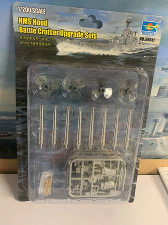 Selling My 1/200 Hood kit it is complete and not started also includes wooden deck plus Trumpeter upgrade kit Asking $300 or best offer